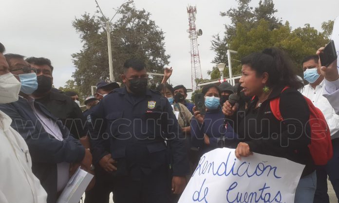 Un grupo de pobladores exige al alcalde de La Unión, Fernando Ipanaqué, explique la real situación de la obra de rehabilitación de agua y alcantarillado del casco urbano.