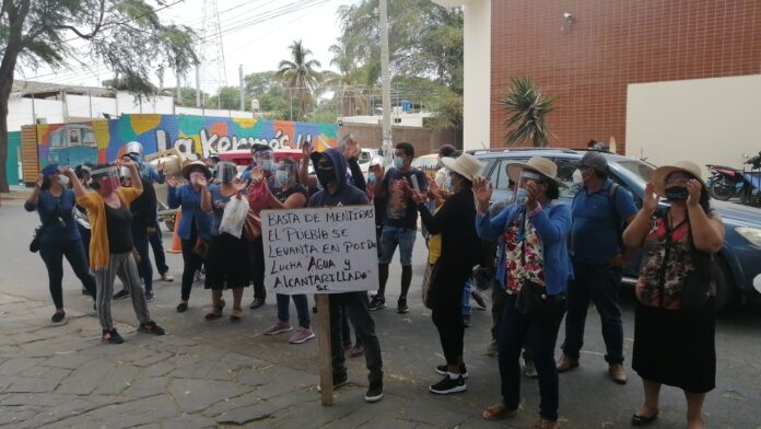 Un grupo de pobladores de Las Lomas llegaron hasta los exteriores del Gobierno Regional de Piura para exigir una solución urgente para la obra de agua y alcantarilllado que lleva paralizada 10 años.