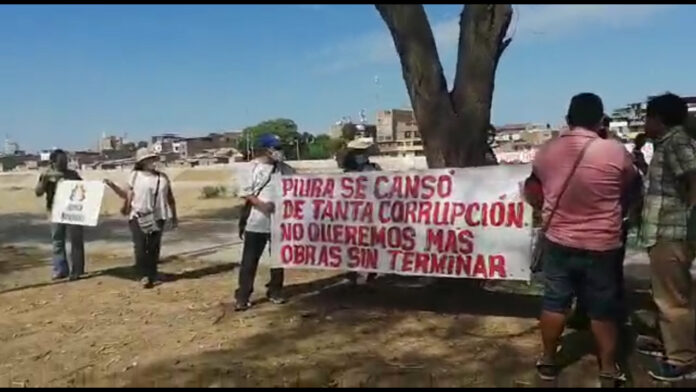 Tras el desborde ocurrido en Chulucanas este jueves 11 de marzo, los pobladores de Miraflores realizan una protesta exigiendo que se concluyan las obras de las defensas ribereñas, pues se sienten inseguros ante una creciente que pudiera llegar.