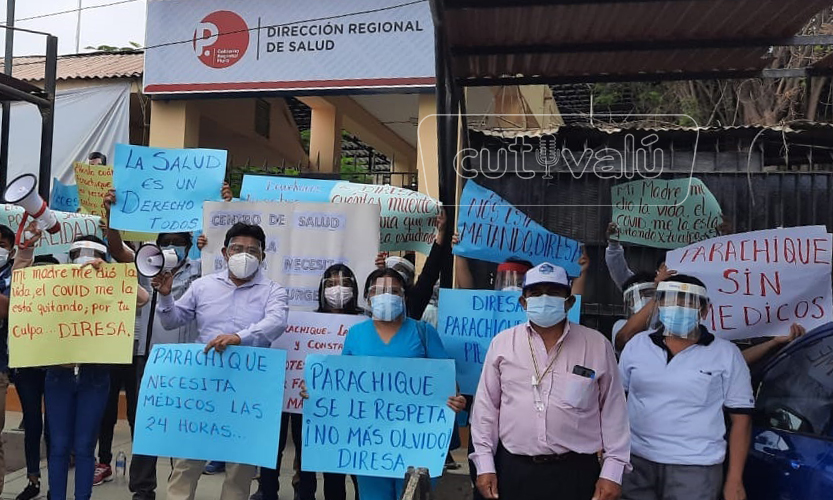 Los trabajadores municipales de Parachique también se presentaron en el plantón. El regidor René Amaya Eca manifestó que el personal de la comuna ya había intentado gestionar el tema del personal de salud con la Diresa, sin embargo, los regidores se unieron a la manifestación ante la falta de respuesta de la entidad. René Amaya destacó que la atención en los establecimientos es solo hasta las 2:00 p.m., la medicina es insuficiente y hay únicamente un médico y dos enfermeras para atender a los 1 500 pobladores de la localidad.
