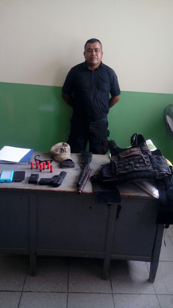 A Luis Enrique Codarlupu Silva (50) (a) «pelado» la policía le encontró entre sus pertenencias una retrocarga sin serie ni marca, color negro, tres cartuchos cal. 16 sin percutir, asimismo, una pistola de aire comprimido marca gamo px1 07 y un chaleco antibalas táctico con sus 4 placas.