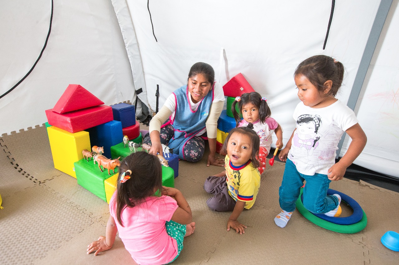 Mientras juegan, las niñas y niños aprenden –por ejemplo– “matemáticas cuando quiere construir un puente, mira dimensiones, altitudes, diferentes formas geométricas (…) o ciencias cuando quieren descubrir y experimentar”, señaló Nora Choquehuanca.