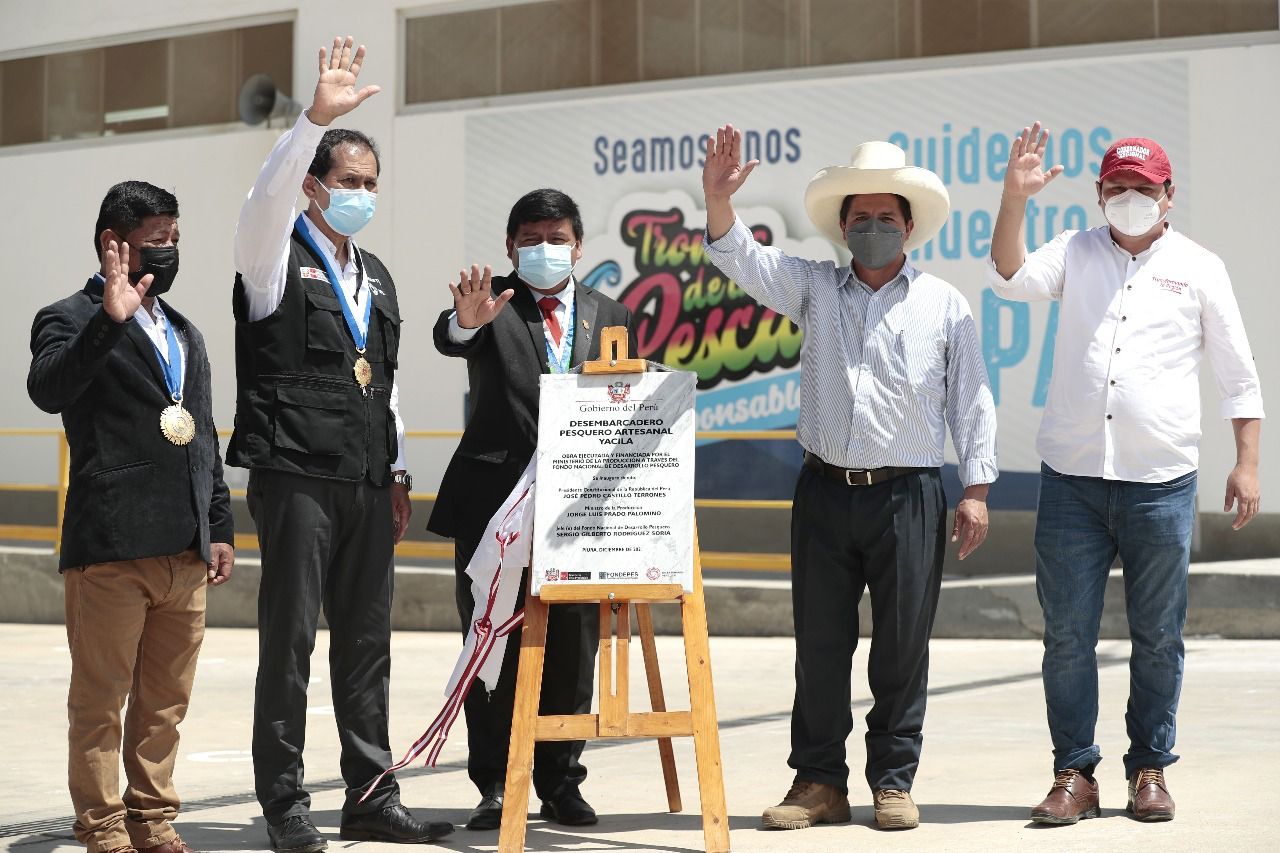 Presidente Pedro Castillo inauguró el Desembarcadero Pesquero Artesanal de Yacila que tuvo una inversión de S/ 28 millones. (Foto: Andina)