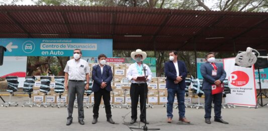 El presidente de la República, Pedro Castillo Terrones, y el ministro de Salud, Hernando Cevallos, entregaron un lote de equipos médicos para implementar los hospitales de Piura ante la tercera ola de la covid. La entrega de los equipos se hizo tras la reunión entre el Jefe de Estado, los ministros de Estado y autoridades … Sigue leyendo Presidente Castillo entrega lote de equipos médicos para implementar hospitales de Piura frente a tercera ola