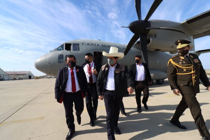 Le acompañaron el presidente de la PCM, Guido Bellido y el ministro de Defensa, Walter Ayala.