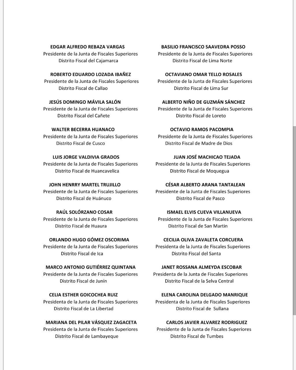 Hasta las nueve de la noche, 27 presidentes de Juntas de Fiscales Superiores había suscrito dicho comunicado, que fue compartido en redes sociales. Se esperaba el pronunciamiento de cuatro presidentes que, durante la tarde, habían guardado silencio. En tanto, los representantes de Tacna, Arequipa y Punoinformaron al resto que no firmarían.