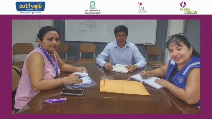 El equipo técnico del área de incidencia y desarrollo de Cutivalú se reunió el pasado viernes 21 de abril, con Javier Silupú Sullón, coordinador de la oficina del Consejo Regional de la Juventud del Gobierno Regional Piura (COREJU) para coordinar y articular la participación de mujeres jóvenes en el proyecto, próximo a presentarse oficialmente, “Mujeres trabajando por la igualdad», el mismo que es ejecutado por Cutivalú en consorcio con Flora Tristán con el apoyo estratégico de AIETI y financiado por la AACID.