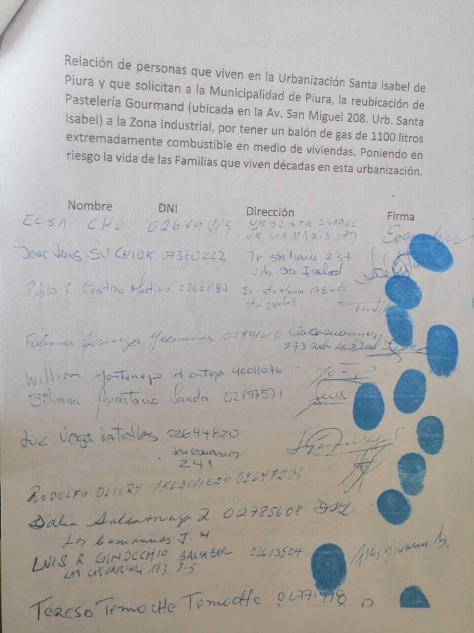 Como se recuerda, la señora Ivy Cerdeño denunció a las autoridades municipales la presencia de un tanque de gas combustible de 1075 UND en una zona residencial. Según declaró a Cutivalú, esto mantenía temerosa a la población, por lo que presentó a la comuna un documento firmado por los vecinos de la urbanización.