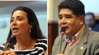 Los congresistas fujimoristas Fredy Sarmiento y Karla Schaeffer expresan posiciones encontradas sobre la propuesta de creación de la zona reservada del mar pacífico tropical.