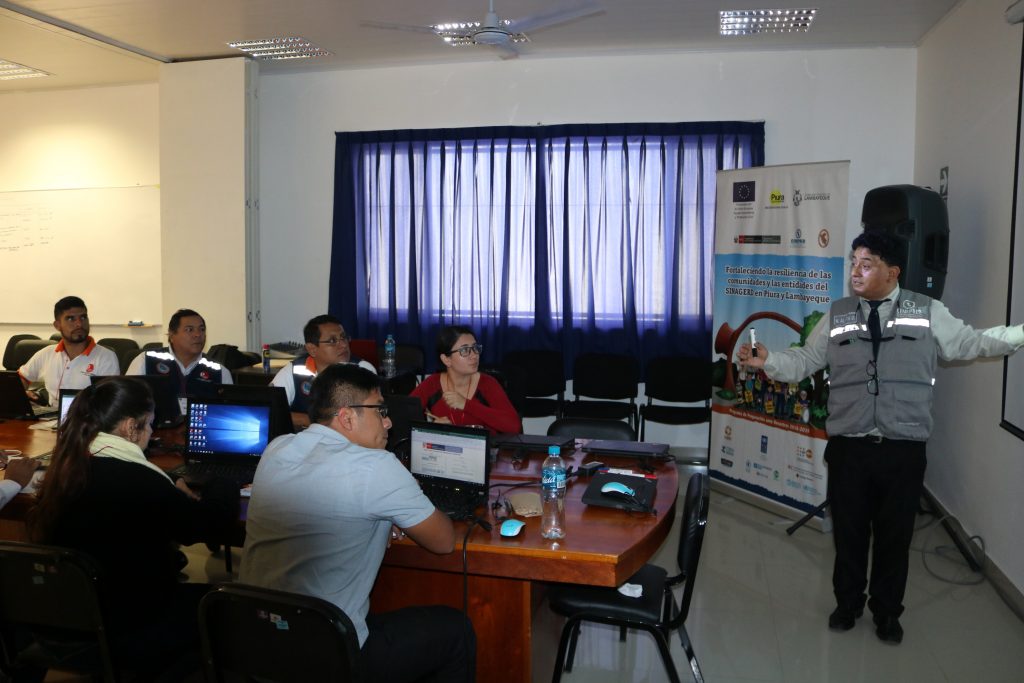 Las capacitaciones se llevaron a cabo en la sede del Centro de Operaciones de Emergencia Regional (COER), estuvo dirigida a funcionarios del COER y de las oficinas de Defensa Civil de las Municipalidades de Piura, Catacaos y la Arena.