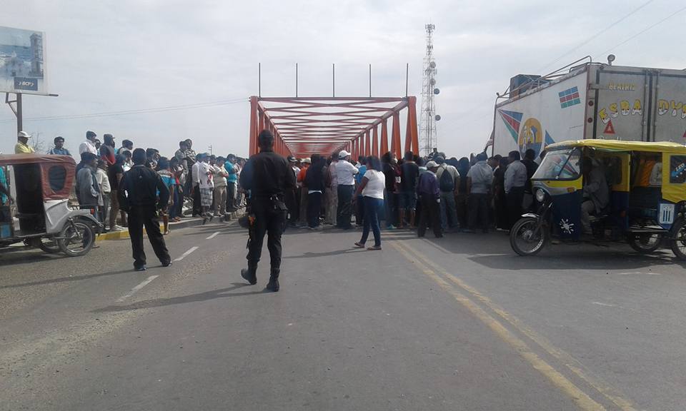 A esta hora de la mañana, el puente de ingreso a la ciudad de Sechura sigue bloqueado por los pescadores que iniciaron hoy un paro de 48 horas en rechazo a la ley de flagrancia. Afirman que no son pescadores industriales sino artesanales.