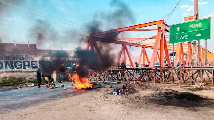 Con el bloqueo del puente Internacional y movilizaciones en diferentes arterias de la ciudad, la población de Ilave, en la provincia de El Collao, acata este 12 de octubre, una medida de protesta exigiendo la renuncia de la presidenta Dina Boluarte y el cierre del Congreso; mientras decenas de pasajeros quedaron varados.