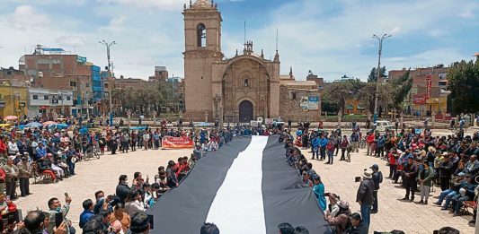 Hoy miércoles 7 de junio, diversos sectores de la población de Puno realizarán el embanderamiento de sus casas de banderas negro y blanco en señal de luto y protesta contra Dina Boluarte. El secretario general del Sindicato Unitario de Trabajadores de la Educación del Perú (SUTEP) de la región de Puno, Alexander Pilco, reiteró que … Sigue leyendo Puno: recordarán el Día de la Bandera con embanderamiento negro y blanco y movilizaciones