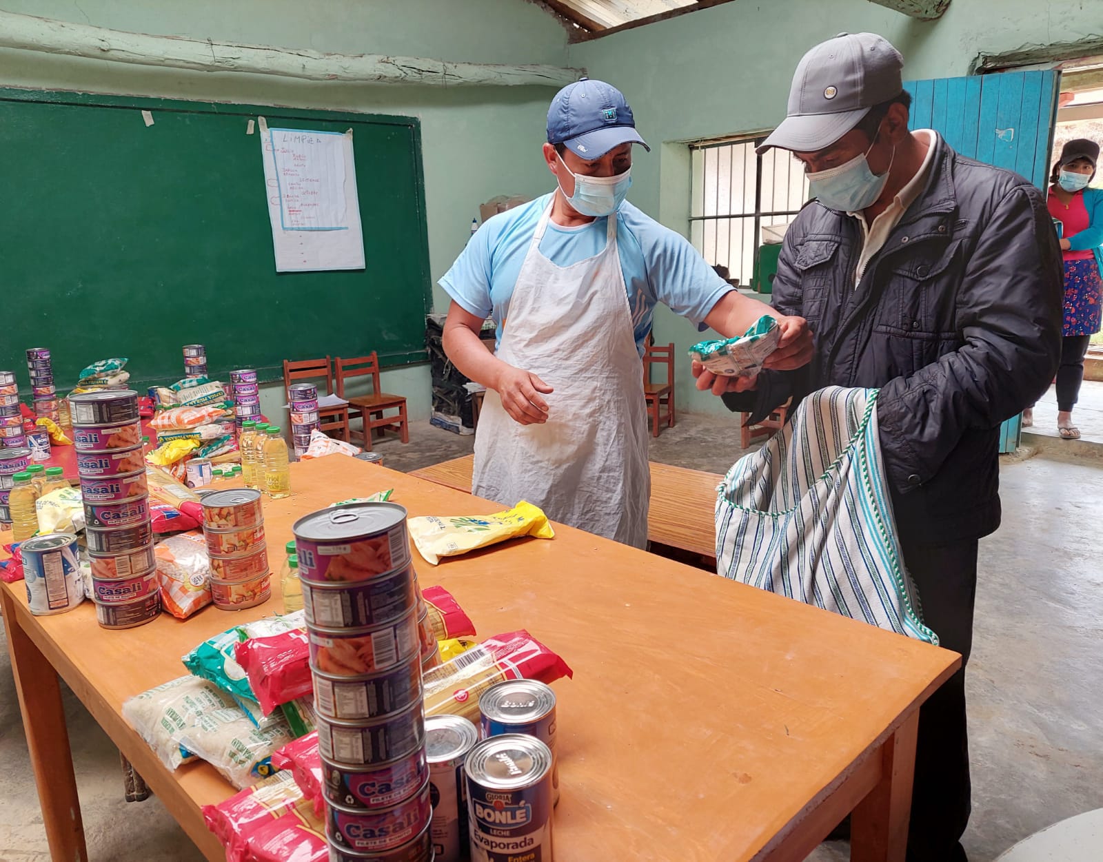 Entre los alimentos entregados se encuentra aceite vegetal, arroz, azúcar rubia, conserva de carne de cerdo, conserva de pescado en aceite vegetal, fideos, frijol. harina extruida de trigo, harina extruida de maíz, leche evaporada entera y lenteja.