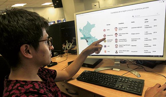 Para tal fin, te compartimos el Mapa de Vigilancia Electoral, una sistematización efectuada por un equipo del programa Talleres de Periodismo de la Fundación Gustavo Mohme Llona, que detalla a todos los candidatos y candidatas al Congreso que tienen sentencias penales y por violencia familiar, y demandas por alimentos.