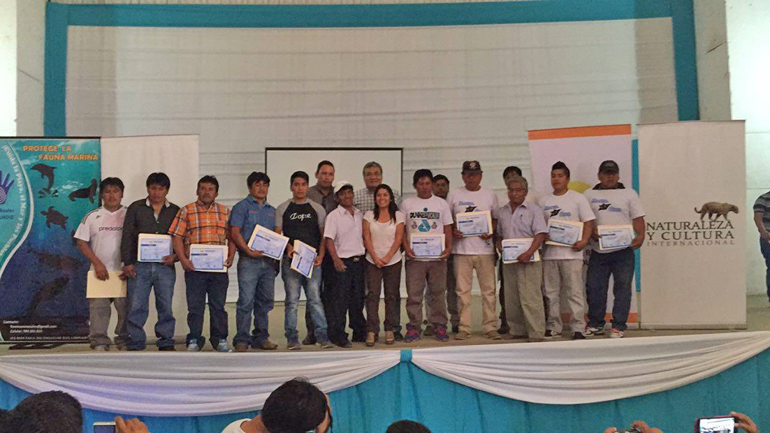 Pescadores artesanales de Piura‬ y Tumbes que rescataron a dos ballenas, mantarrayas y otras especies marinas atrapadas en redes, fueron reconocidos por la Dirección Regional de la Producción.