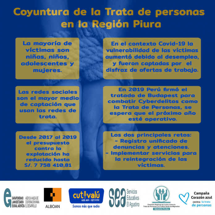En el marco del Día Mundial contra la Trata de Personas se llevó a cabo el Fórum: «La Trata en la Región Piura en el Contexto Covid 19» con la participación de ponentes del MININTER, MIMP, Fiscalía de Piura, CHS Alternativo y OIM (Organización Internacional para las Migraciones).