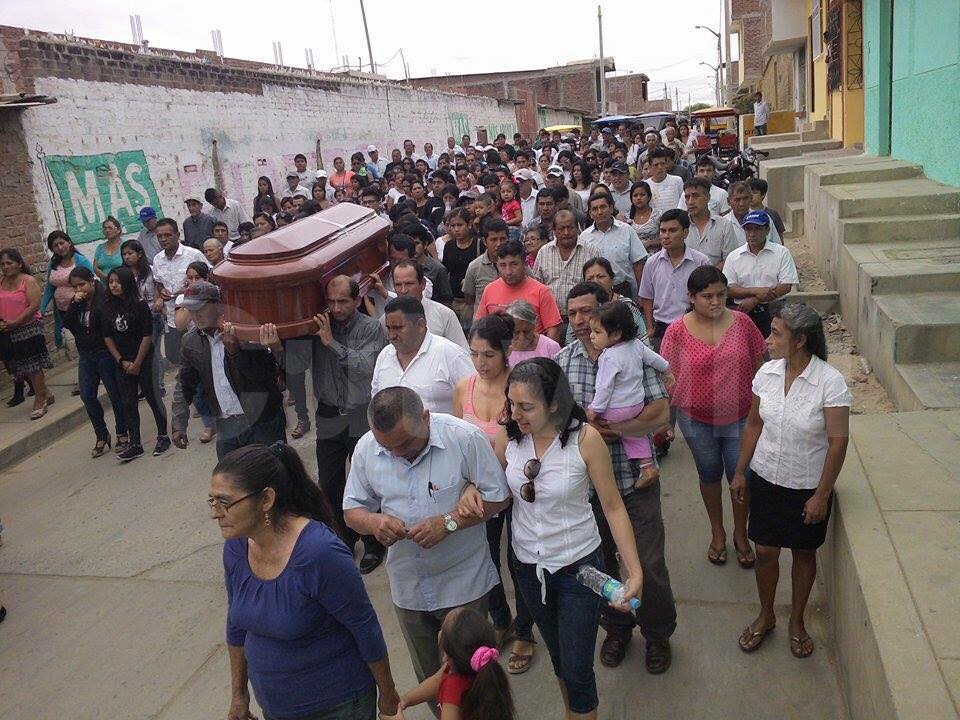 El cortejo fúnebre partió desde la calle Gabriel Bejar, e hizo un recorrido por las principales calles de Chulucanas hasta llegar al cementerio general de la ciudad donde fueron sepultados los restos del desaparecido cocinero.
