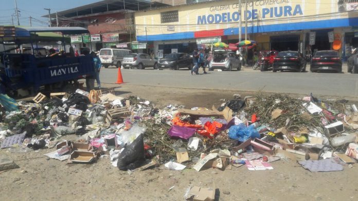 La municipalidad recogió hoy más de 80 toneladas de basura del Mercado de Piura, tras las fiestas de Fin de Año.