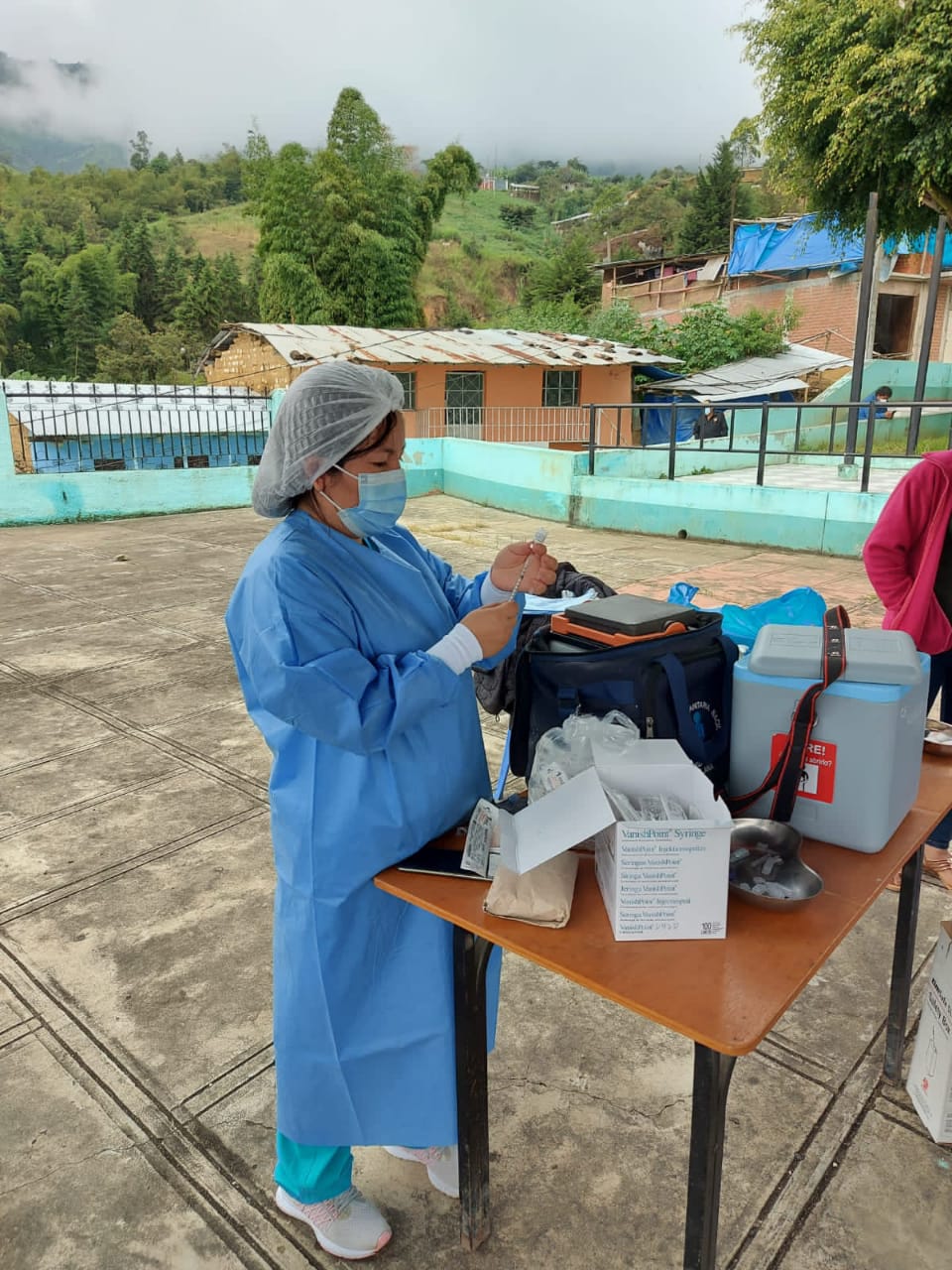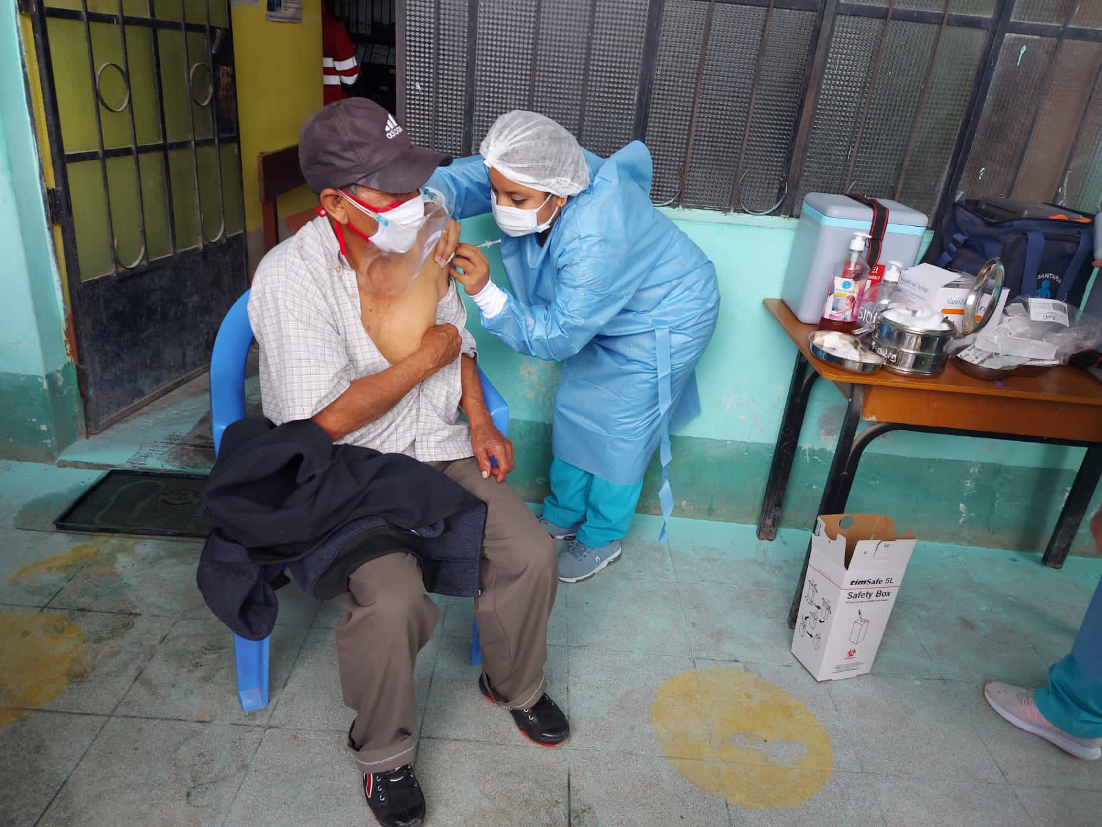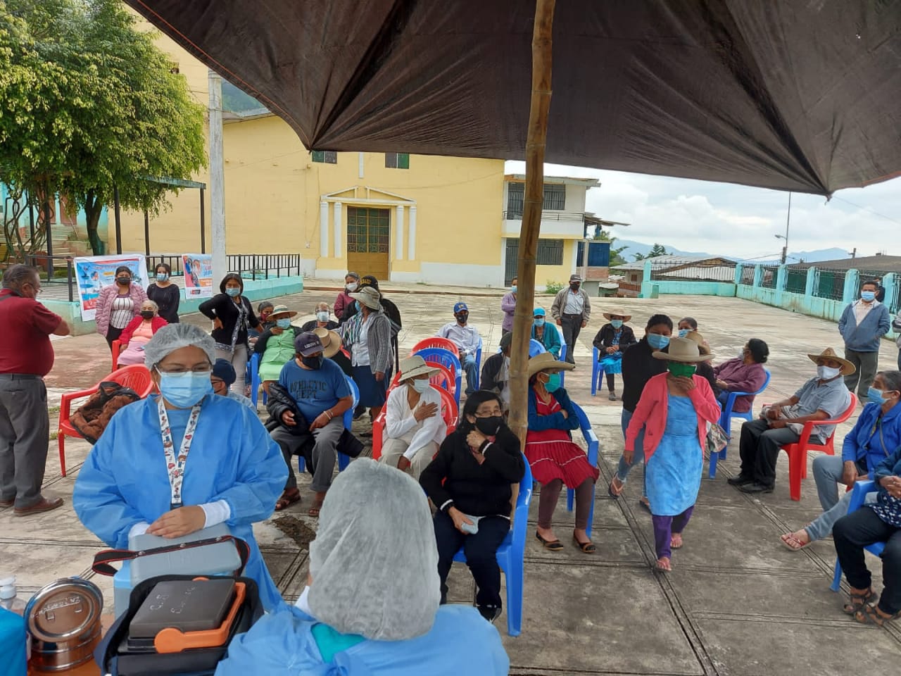 La inmunización se llevó a cabo en el centro de salud y la plaza de este distrito ayabaquino. Según la Lic. en enfermería, Yesil Peña Flores, en esta jornada la meta es vacunar a 270 adultos mayores.