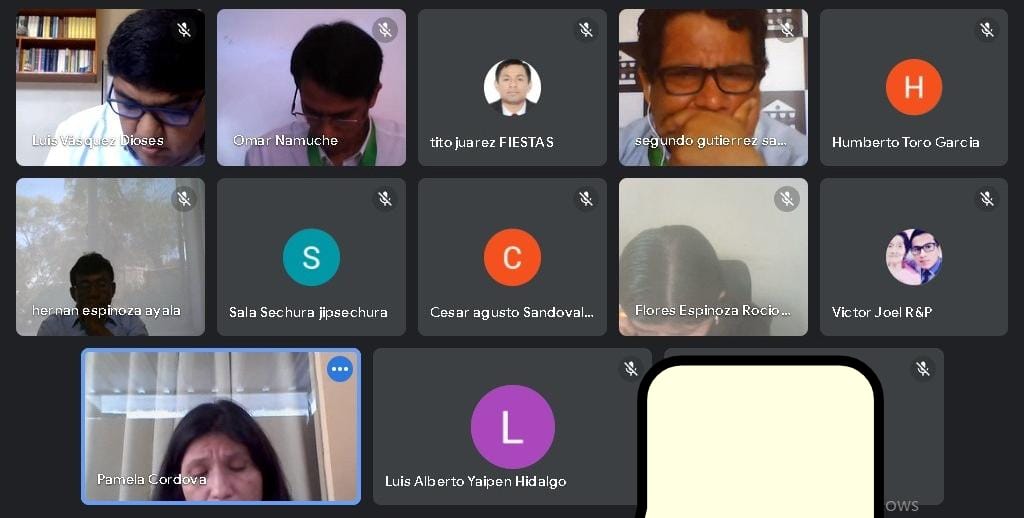 En la audiencia virtual participa la encargada de la investigación,  la fiscal Pamela Córdova y también el presidente de la comunidad, Hernán Espinoza.