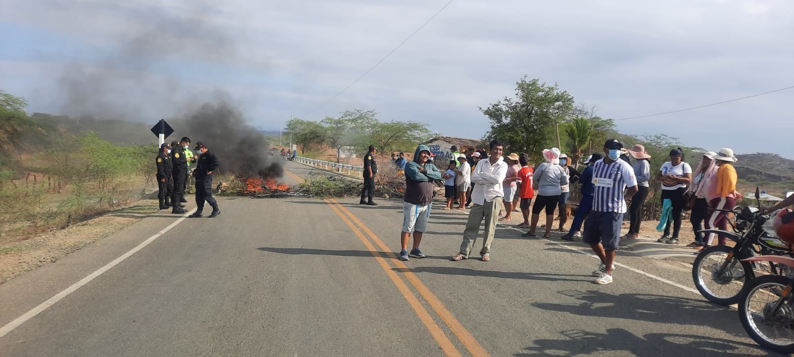 La carretera Sullana- Alamor- Puente Internacional también permanece cerrada por un grupo aproximado de 25 personas que reclaman por el alza del combustible y peajes.