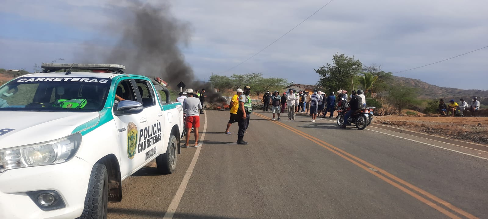 Asimismo, en el km 44 de la carretera Piura- Paita hay un piquete de manifestantes que han bloqueado la vía con piedras y quema de llantas.