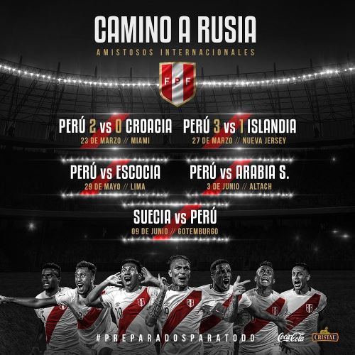 Además, detalló que la delegación peruana estará alojada en el hotel Marriot y entrenarán en el colegio Markham de Miraflores. Jugarán el martes 29 de mayo ante Escocia, a las 20:00 horas en el Estadio Nacional, y el miércoles 30 viajará a Europa.