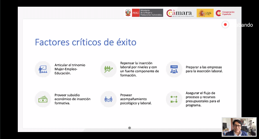 Esta mañana se presentó un seminario denominado «Estado y empresa: Buenas prácticas en prevención de la violencia de género» a través de la plataforma virtual Zoom, presentado por el Ministerio de la Mujer y Poblaciones Vulnerables (MIMP) en alianza con la Agencia Española de Cooperación Internacional para el Desarrollo (AECID) para exponer los principales hallazgos en la sistematización de las experiencias de inserción laboral de mujeres víctimas de violencia de género.