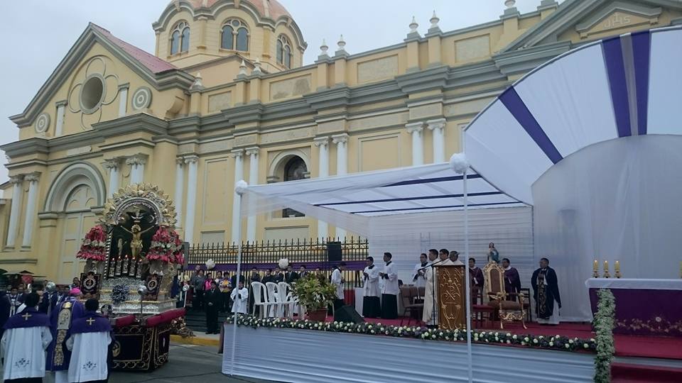 El atrio de la Catedral de Piura San Miguel Arcángel; lugar de la santa Misa, lució lleno de fieles devotos del Cristo morado. Al término de la eucaristía se inició el tradicional recorrido procesional.