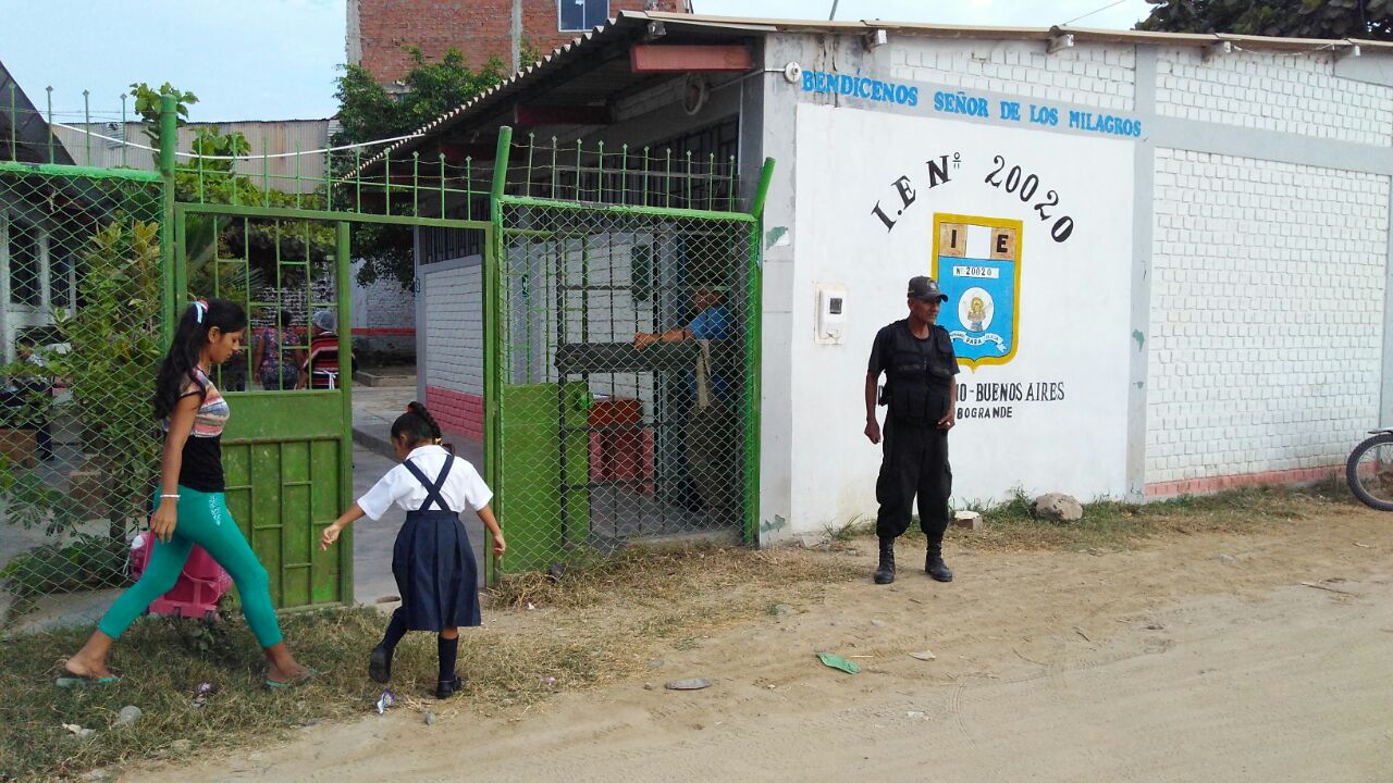 Por tal motivo, un grupo de efectivos del serenazgo, realiza labores de seguridad y de apoyo para evitar cualquier accidente de tránsito cerca de los colegios, ante la congestión vehicular; como es el caso de la I.E.2002, ubicado en el asentamiento Buenos Aires.