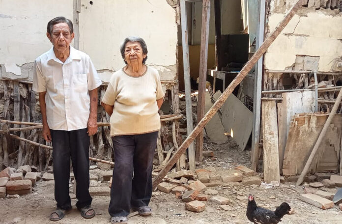 #EnVivo|| Dos hermanos adultos mayores han quedado desamparados luego de que su vivienda ubicada en la avenida Progreso de Castilla, cayera tras el sismo del último viernes.