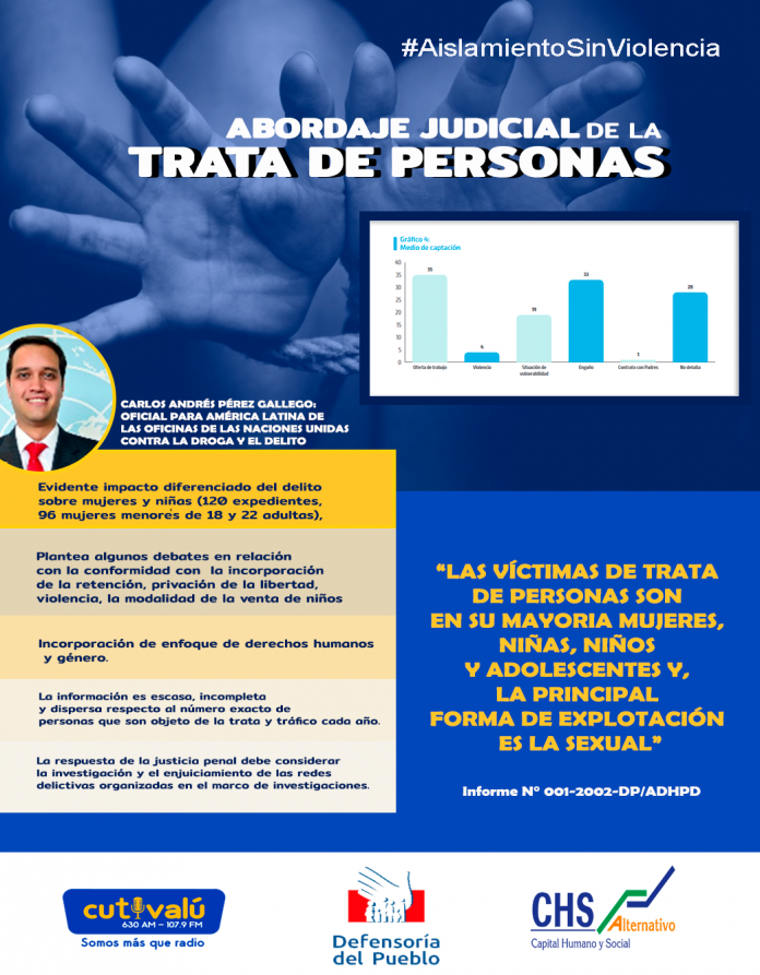 El Informe 01-2020 de la Adjuntía para los Derechos Humanos y las Personas con Discapacidad revela con preocupación la nula aplicación de los enfoques de género, niñez y de derechos humanos en gran parte de las resoluciones y sentencias sobre delito de trata de personas emitidas en diversas instancias del sistema de justicia entre los años 2005 y 2017.
