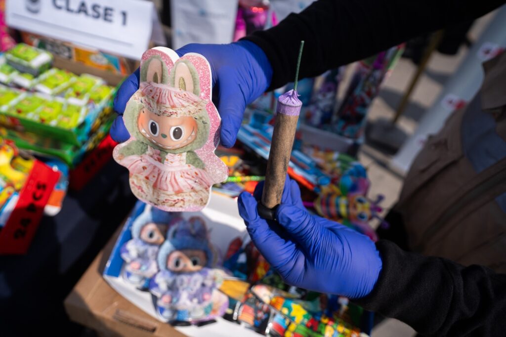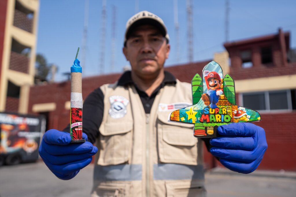La Sucamec también alertó del hallazgo de cohetes de diversos tamaños y fabricación artesanal, que son adornados con papeles de vivos colores e imágenes de superhéroes, animales, pistolas de juguete, y personajes de videojuegos, como Mario Bros y hasta el popular peluche Labubu.