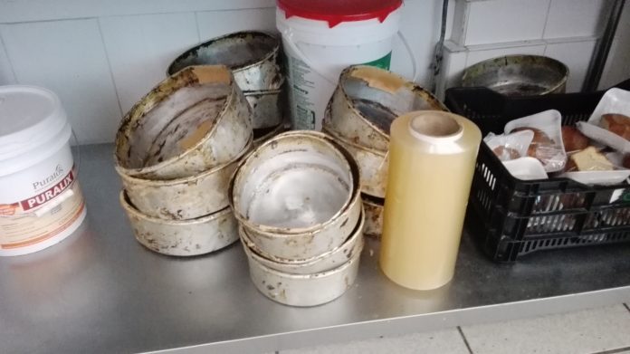Igual las canaletas de alcantarilla, los utensilios, el lavatorio y los pisos se mostraban demasiado usados y necesitan urgente reposición. Los coches de madera lucían llenos de grasa así como los anaqueles para el transporte del pan.