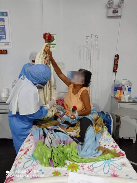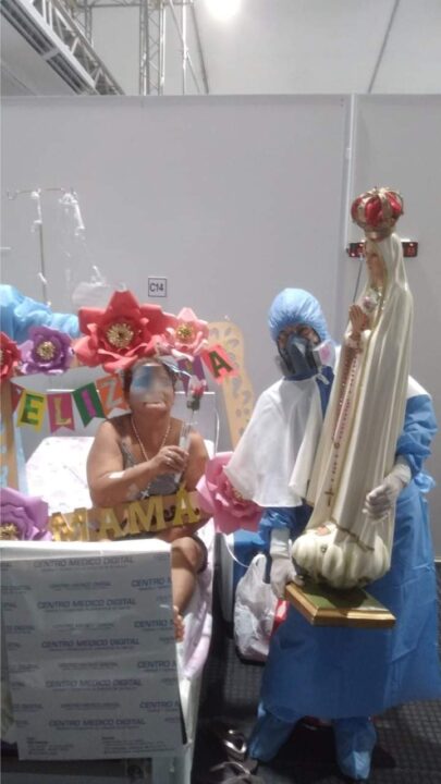 Las mamás recibieron un homenaje de los médicos y asistenciales, que vistieron un atuendo especial. Además, antes de salir las madres recibieron la bendición de la Virgen de Fátima, quien llegó a cada una de las camas de las pacientes.