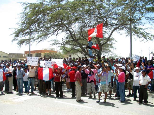 Un grupo de productores bananeros protestaron en el frontis de la Junta de Usuarios del Sector Hidráulico Chira, exigiendo que no se autorice el derecho del agua a la empresa privada Corporación Miraflores – COMISA SAC.