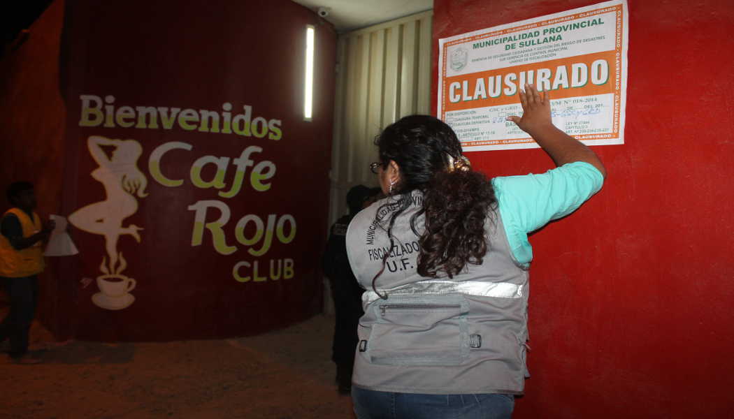 Dando cumplimiento a la Resolución Gerencial Municipal N° 006-2016, la Municipalidad Provincial de Sullana clausuró de manera definitiva el conocido prostíbulo “Café Rojo”, el cual se ubica en la salida Panamericana con dirección a Piura, además se intervinieron a más de 20 trabajadoras sexuales de diversas nacionalidades.