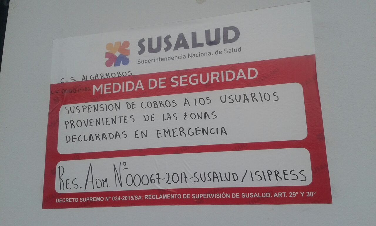 SuSalud detecta cobros indebidos en 15 centros de salud de la región Piura, pese al decreto de urgencia 006 que establece la gratuidad de este servicio en zonas declaradas en emergencia.