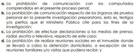 Con esta decisión, Susana Villarán deberá completar los 24 meses con arresto domiciliario en su vivienda de Lurín, el pago de una caución de 20.000 soles y con las siguientes reglas de conducta: