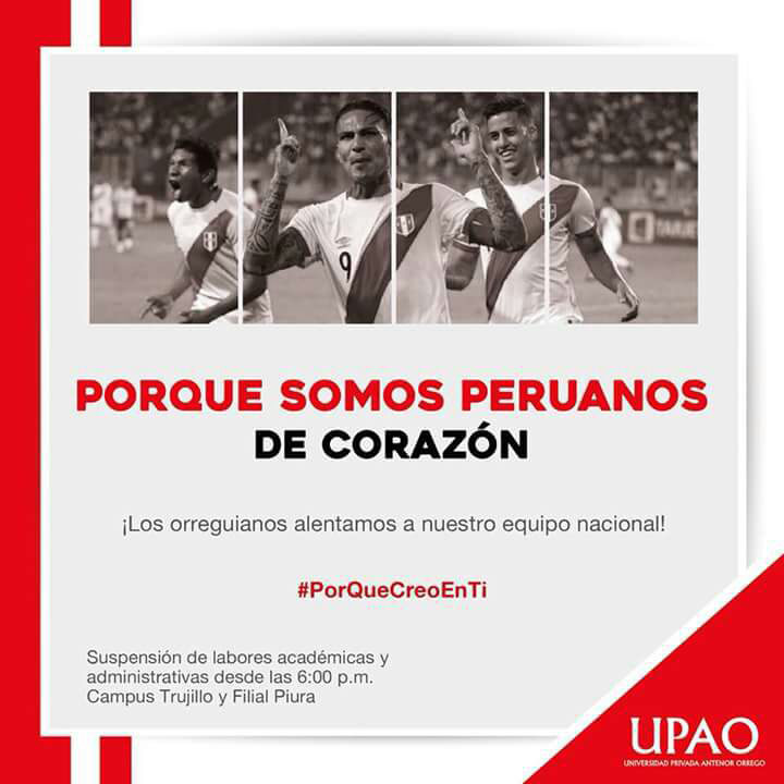 Suspenden clases en la Universidad Privada Antenor Orrego (UPAO) a partir de las 6:00 de la tarde por el encuentro de Perú – Argentina.