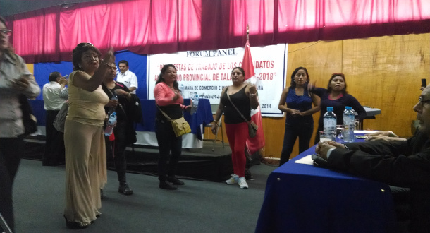 Simpatizantes del candidato de Somos Perú, José Rodríguez Sánchez, impidieron que se desarrolle el encuentro que organizó la Cámara de Comercio de esta provincia para escuchar las propuestas de los aspirantes al sillón municipal.