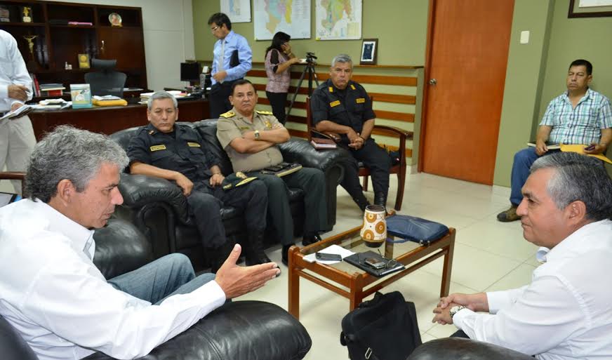 Leoncio Delgado Uribe participó de una reunión con el presidente regional de Piura, Reynaldo Hilbck, para el alojamiento y los lugares estratégicos donde serán distribuidos los 500 efectivos policiales que llegarán a la región.