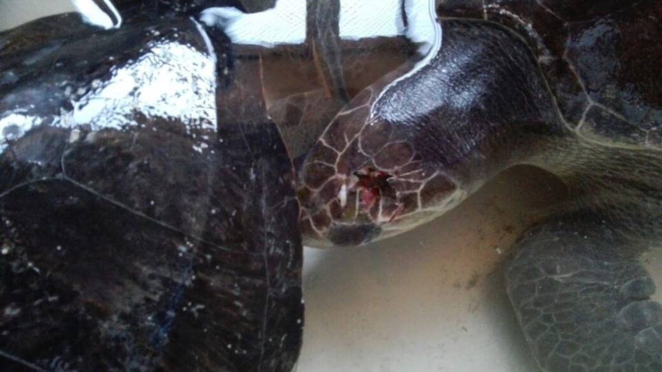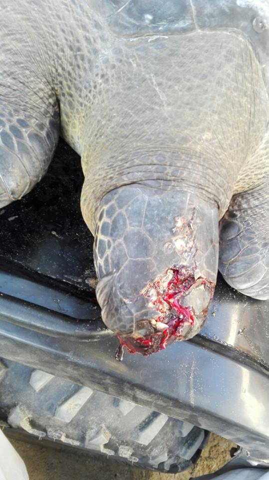 El común en estas tortugas es una profunda herida en la cabeza provocadas al parecer con lanzas de fierro.