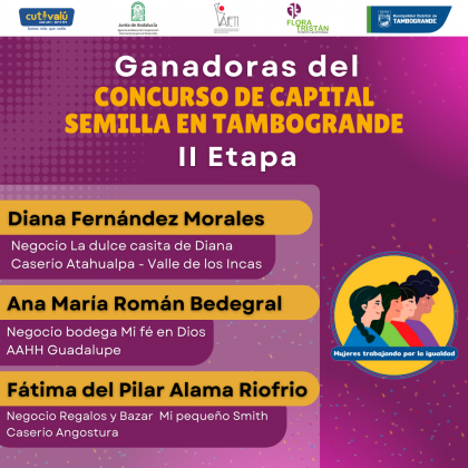 Cutivalú entregará capital semilla a 3 lideresas de la Red de Mujeres de Tambogrande que ganaron el concurso de planes de negocio. El concurso se realizó el pasado viernes 24 de mayo en este distrito, donde 19 mujeres presentaron sus planes de negocio como parte del proyecto Mujeres trabajando por la igualdad