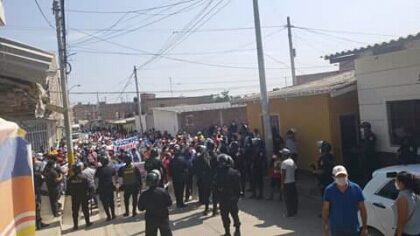Más de un centenar de comerciantes protestaron este 21 de octubre en Tambogrande, exigiendo a la municipalidad distrital celeridad en la reconstrucción del área de carnes y en la reubicación del sector “chiveras” del mercado central. En la manifestación se produjo una trifulca entre los vendedores y el personal policial, que resultó con tres comerciantes heridos y uno detenido.