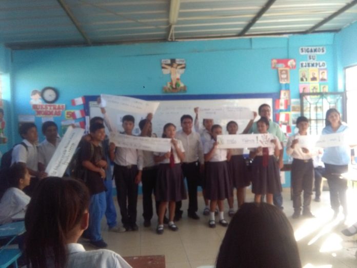 Como resultado de las capacitaciones que se les ha estado brindando a los tenientes gobernadores del distrito Veintiséis de Octubre, el viernes 21 de junio de 2019, se llevó a cabo una réplica por parte del teniente Rubén García Julca, quien organizó un taller para estudiantes de secundaria de la institución educativa Divino Jesús de los Médanos en Castilla.