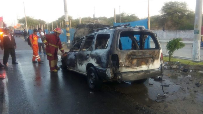 Los hechos se registraron al promediar las 5:00 p.m., en plena avenida Sánchez Cerro, a la altura de la Textil, cuando empezaron a salir llamas de fuego de la parte posterior del auto Station Wagon, color blanco.