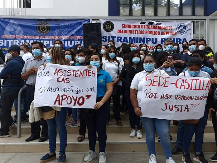 Los trabajadores del Ministerio Público y del Poder Judicial en la ciudad de Piura acatan una huelga nacional indefinida para exigir el aumento de sus remuneraciones y el cumplimiento de convenios colectivos.