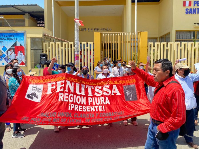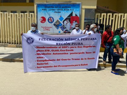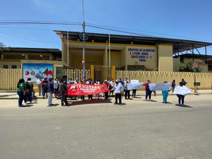 Durante la protesta realizada en los exteriores del Hospital Santa Rosa, los manifestantes también solicitaron el incremento del presupuesto para Salud y el cumplimiento del Cuarto Tramo de la Escala Salarial.